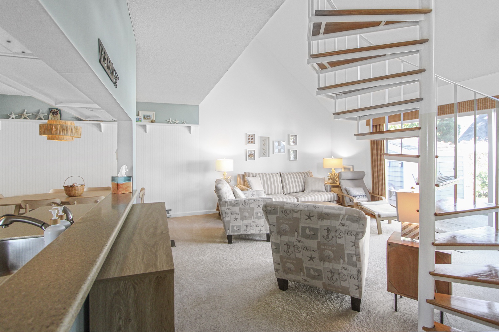 Gorgeous 2BR/2BA townhome with loft. Open living-dining area with sliders to nice patio area. First floor bedroom with queen bed, spiral stairs to second floor loft with 1 twin bed and 1 full bed, second enclosed bedroom with 1 twin and 1 queen bed with full bath. Two bedrooms with A/C and owner also provides internet access. Only a short drive to Brewster town beaches.